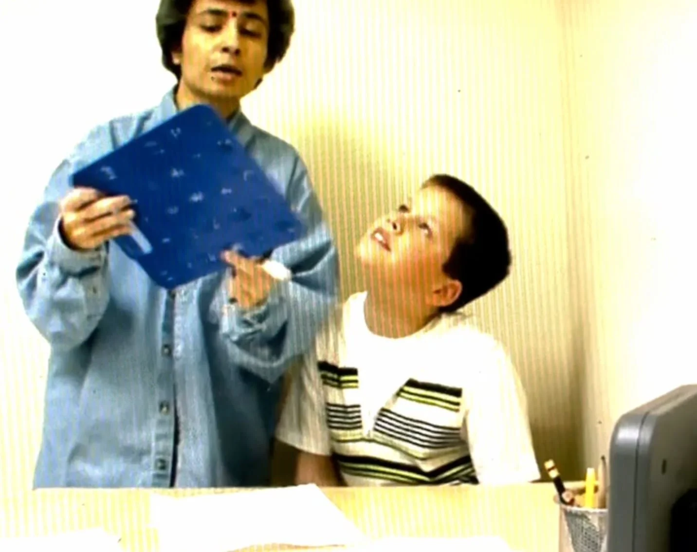 Of the two, A Mother’s Courage makes the bigger contrast. Released 17 years earlier than Beyond, it features a different method of FC (RPM instead of classic FC) and a different master trainer (Soma Mukhopadhyay instead of Darlene Hanson). Unlike Beyond, it’s filled with famous autism experts; it captures a young child’s first moments of RPM; and it presents these extraordinarily implausible moments as extraordinary breakthroughs.